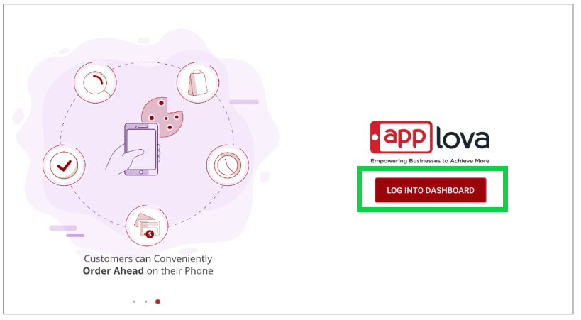 2. Click on "LOG INTO DASHBOARD" to login to Business Manager.
