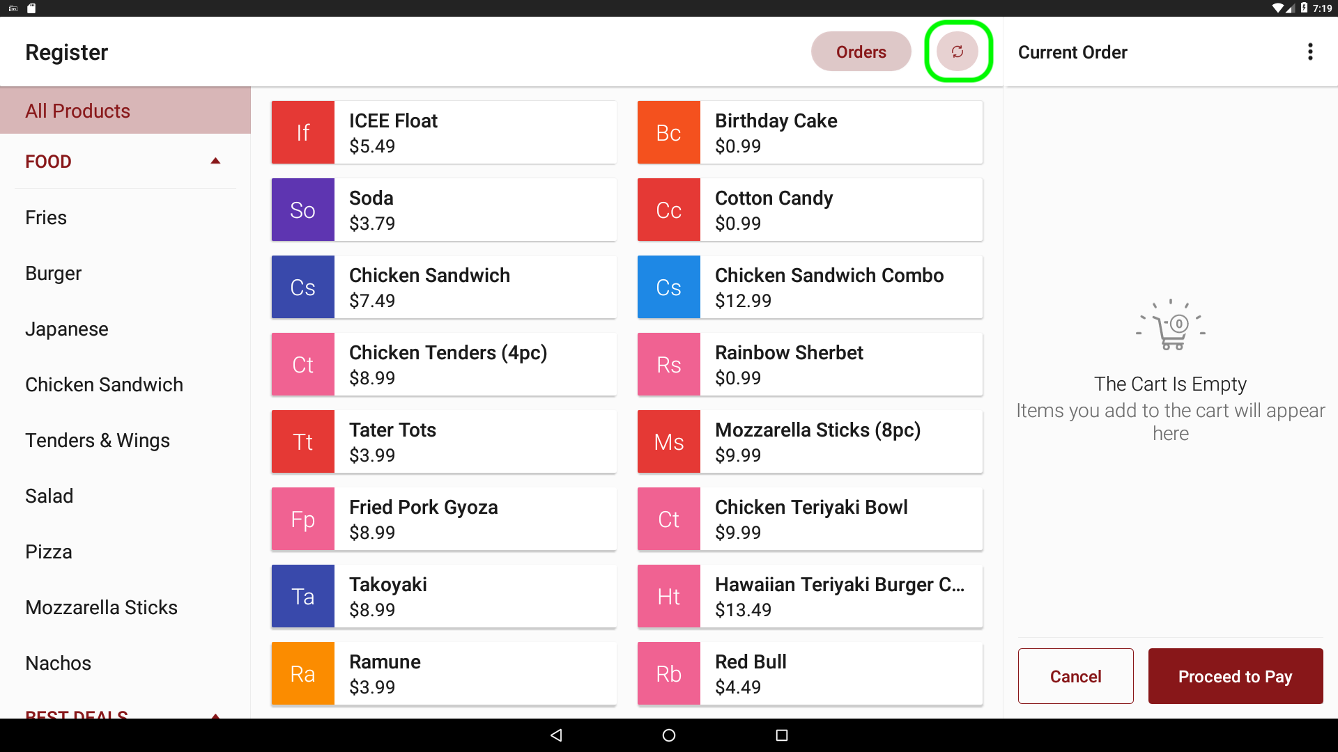 Therefore, after updating the menu, please manually sync with the server following the steps below.